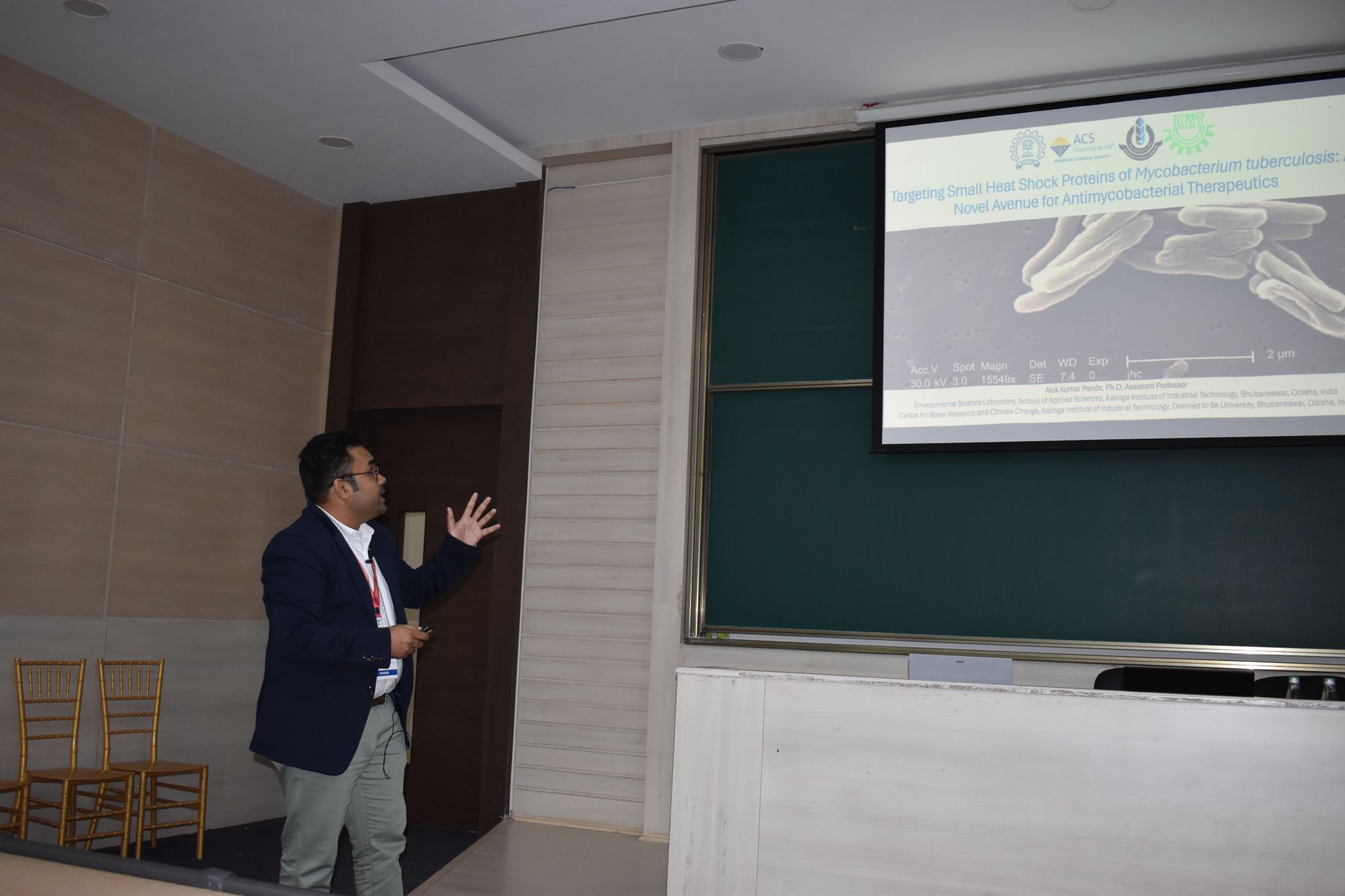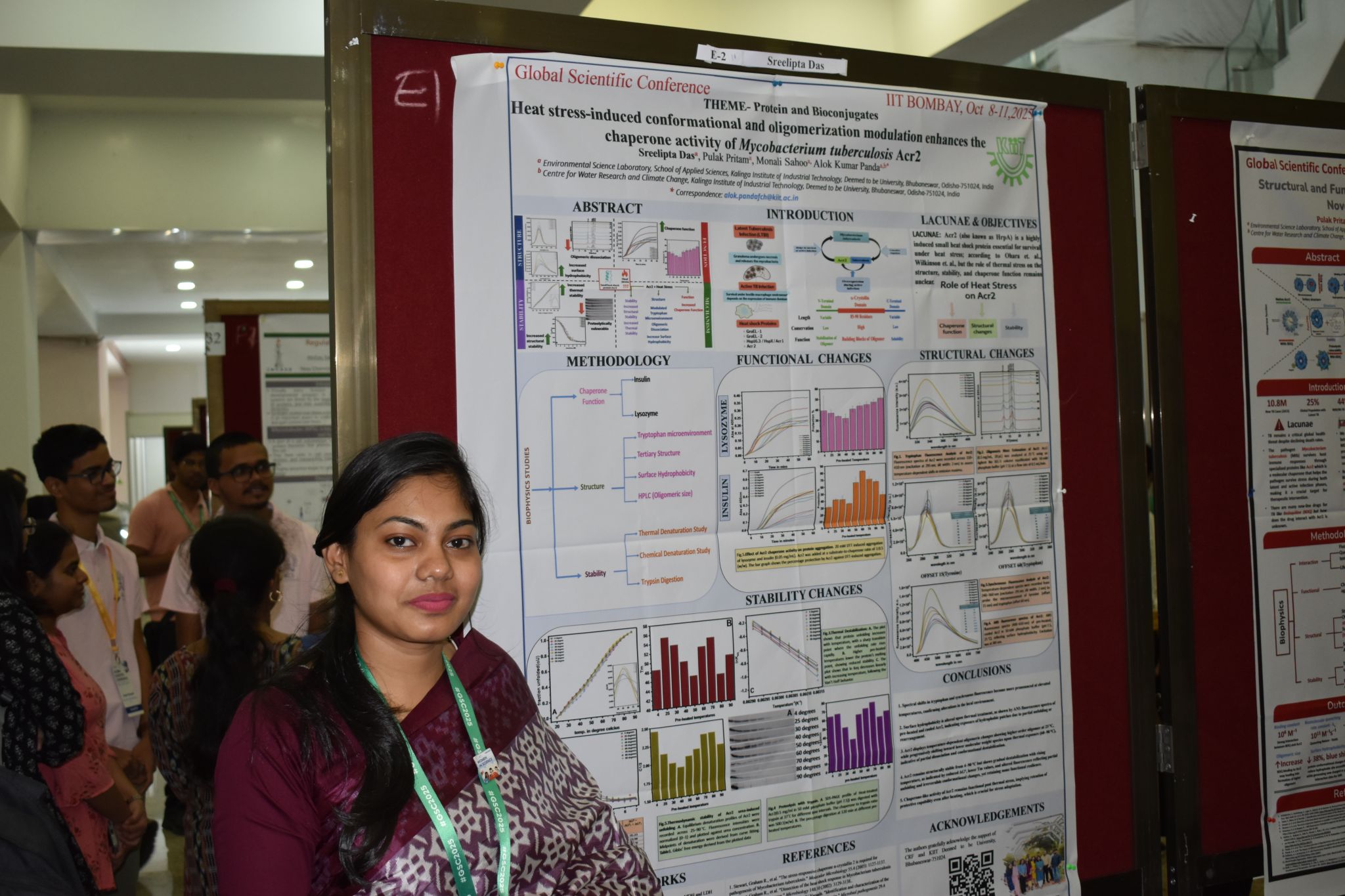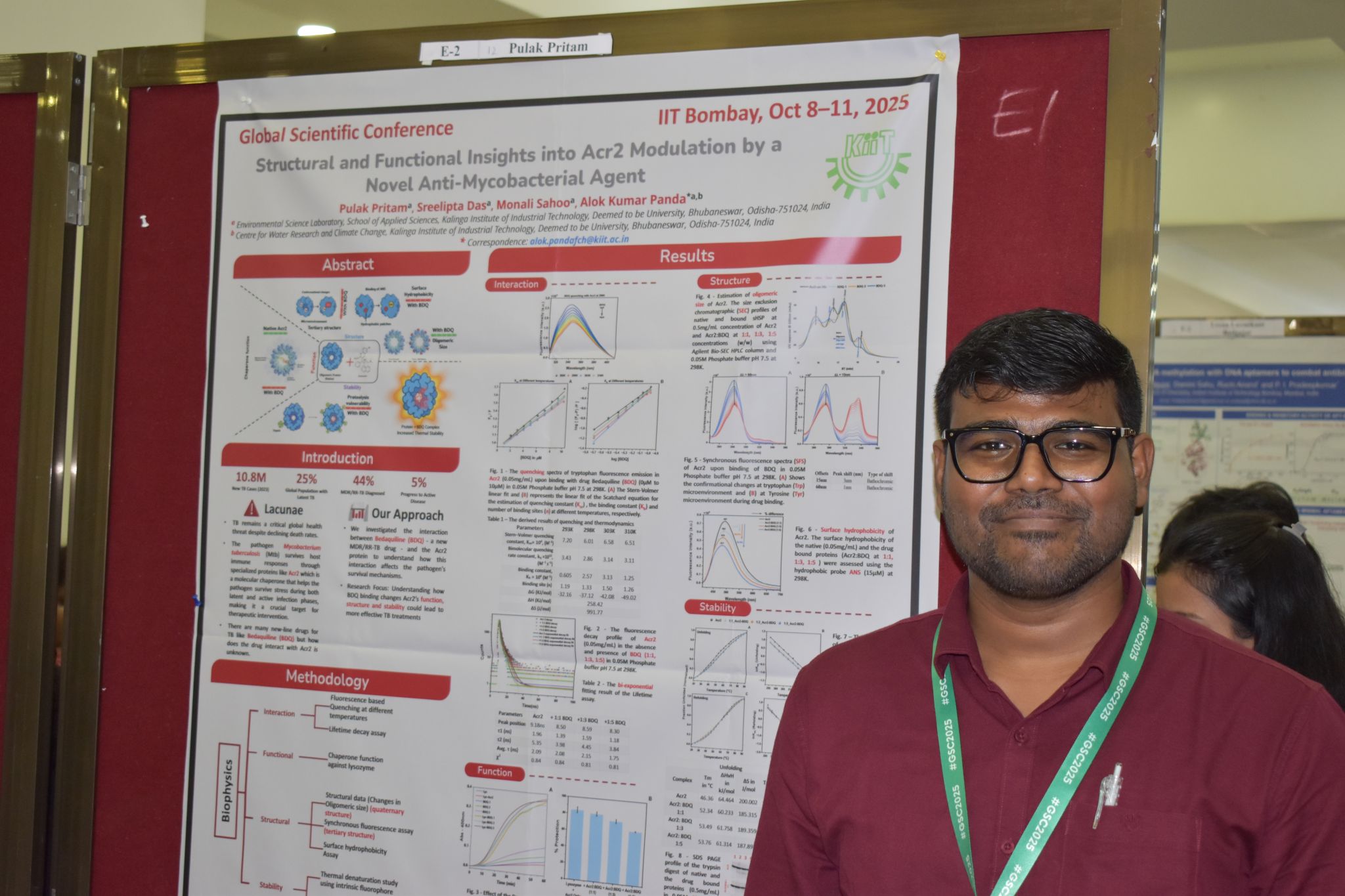 October 8, 2025 – Our Biomolecular Team members, Pulak Pritam and Sreelipta Das, presented a poster on biophysical studies of small heat shock proteins. Jyotirmayee Giri from the Carbon Materials Team showcased our work on chromium remediation from aquatic environments using biochar. Dr. Panda gave a invited talk on the role of sHsps in tuberculosis at GSC-2025